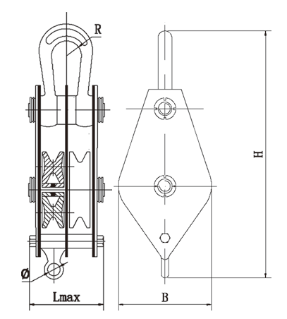 1、吊钩特点:优质合金钢模锻而成,3倍安全系数。 2、滑轮:铸铁滑轮、铸钢滑轮、热轧滑轮。 3、滑轮套芯:复合耐磨铜套、纯铜套、滚珠轴承、滚针轴承。 4、其他吨位可以定做。