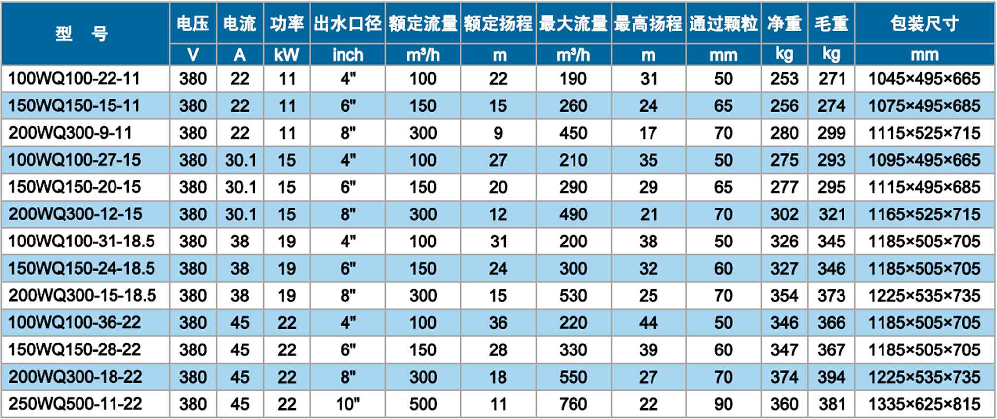 WQ双流道潜水排污泵 11~22kW 四极
